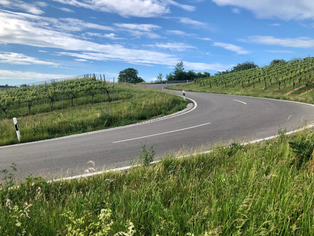 Schnell verlasse ich den feinstaubbeladenen Stadtverkehr Stuttgarts in nordöstlicher Richtung. Die ersten Kilometer erlaube ich mir noch die Nutzung der vierspurigen Bundesstrasse. Doch schon nach 20 Minuten befinde ich mich am Ausgangspunkt meiner eigentlichen Nachmittagstour. Rund um Weinstadt finden sich die ersten schönen Kurven, die durch die Weinberge führen. Die Sonne scheint, es ist angenehm warm an diesem schönen Frühlingstag. Ich geniesse die sanften Kehren und schönen Aussichten. In Winterbach tanke ich mein Motorrad noch einmal voll und bunkere noch ein Vesper für Unterwegs, bevor ich die Sonnenbergstrasse nach Rohrbronn hochfahre.