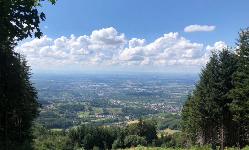 Oben auf der Schwarzwaldhochstrasse öffnen sich herrliche Aussichten in das Rheintal und auf die Vogesen, drüben auf der französischen Seite. Die Wege, die rechts und links von dieser Traumstraße abzweigen, sind eine Massage für die Motorradfahrerseele. Und auch die Gleitschirmpiloten, die hier ihr Revier haben, genießen den herrlichen Tag.