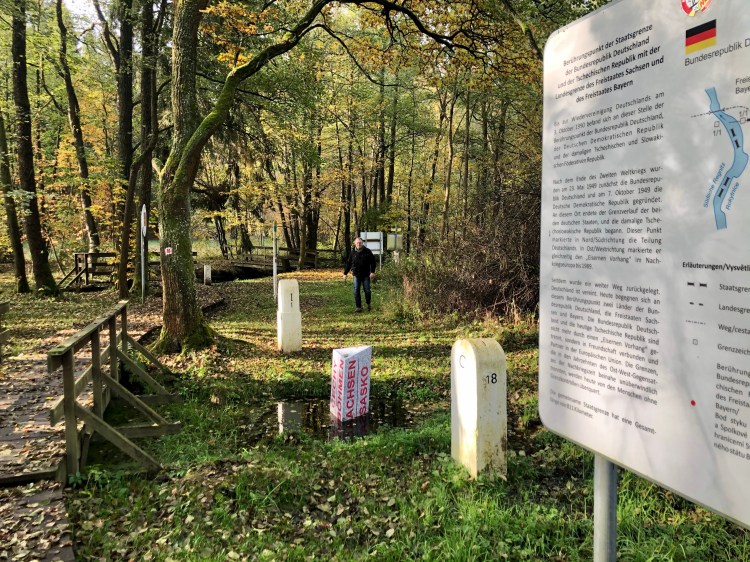 Wir starten am letzten Wochenende im Oktober. Von Waldenburg geht es quer durch Bayern in Richtung Dreiländereck. Bis 1918 verlief hier die Grenze zwischen Österreich-Ungarn und dem Deutschen Reich; gleichzeitig trafen sich dort die Landesgrenzen von Bayern, Böhmen und Sachsen. Später begann hier die fast 1400 km lange innerdeutsche Grenze zwischen der Bundesrepublik Deutschland und der DDR.