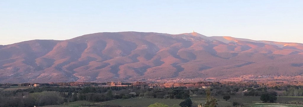 Ich umfahre die Blockade und statte der Gorges de la Nesque einen aussichtsreichen Besuch ab. Dann rücke ich in meine Unterkunft mit Blick auf den windigen Berg im Abendlicht ein. Gute Nacht!