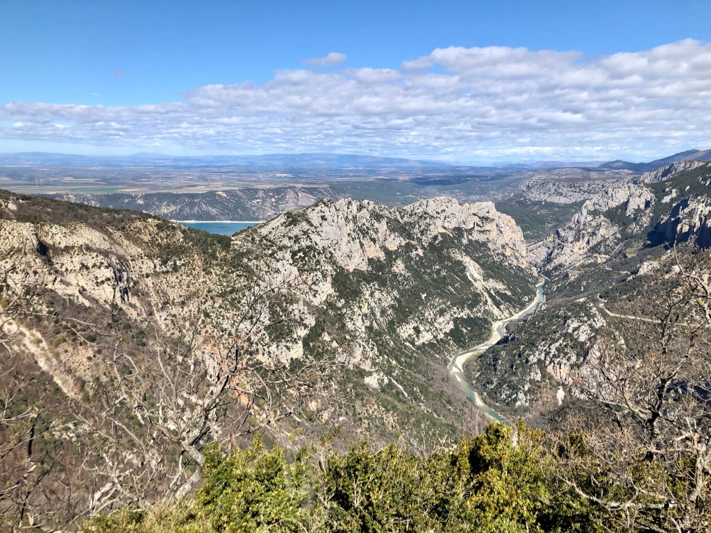 Mit Volldampf fahre ich das nächste Ziel an: Der Grand Canyon du Verdon ist die Nummer Eins unter den Schluchten in Westeuropa. Der Nebenfluss der Durance hat sich in laaaaaanger schwerer Arbeit auf einer Länge von 21km bis zu 700m tief durch den Kalkstein gefräst. Die Route Des Crêtes ist meistens um diese Jahreszeit noch nicht befahrbar, daher habe ich diese „Nordschleife“ heute gar nicht eingeplant. Doch von den Balcons de la Mescla 250m oberhalb des Flusses, von den Tunnels de Fayet und am Cirque de Vaumale bieten sich ebenfalls herrliche Aussichten. Erst 1905 wagte man sich auf den Grund der Schlucht, um die letzten weißen Flecken auf der französischen Landkarte ordnungsgemäß einfärben zu können. Heute sind hier Standup-Paddler unterwegs. Oben am Rande des Abgrunds genieße ich beim Roadside-Frühstück die grandiose Aussicht.