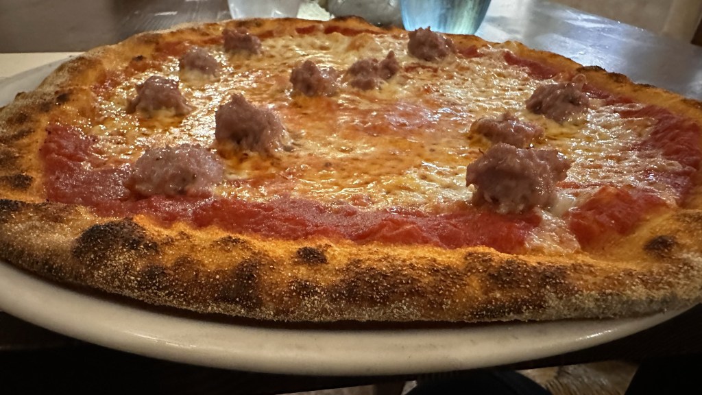Um 17:45 kann ich endlich ins Zimmer. Die Inhaberin bemerkt meine schlechte Laune und gibt mir ein Zimmerupgrade, jetzt hab ich nen Balkon mit Meerblick. Und ich ärgere mich über mich selbst ein bisschen, dass ich wegen 2,5 Stunden warten am Strand schlecht gelaunt bin und es andere auch noch spüren lasse. Kann man noch verwöhnter sein? Vielleicht habe ich aber auch einfach nur Hunger. Die nächste Pizzeria ist 50m entfernt. Sie öffnet um 18:30. Wahrscheinlich.