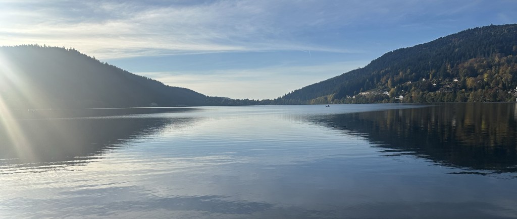 Schon gegen 15 Uhr komme ich in Saint-Dié-des-Vosges an. Hier will ich heute übernachten. Doch ich drehe vorher noch eine Runde über Gerardmer. Hier sitze ich mit einem Kaltgetränk und süßem Gebäck in der Sonne und genieße es, dass ich einfach in Ruhe hier in der Sonne sitzen darf.