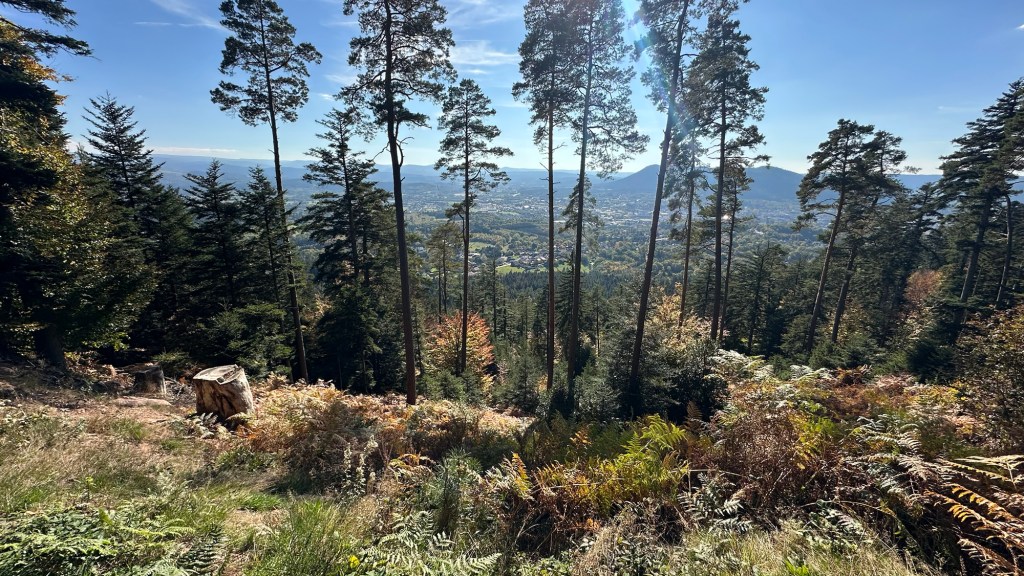 Einige Wege sind so steil, dass sie Eingang in meine Sammlung steiler Straßen finden würden, wenn sich doch nur jemand bequemt hätte, ein entsprechendes Schild aufzustellen. Aber die einzigen Schilder, die mir ins Auge fallen sind die, auf denen die Namen der Routes Forestières geschrieben stehen. RF steht in meinen Augen nicht für Republique Française, sondern für – ja, schon klar. RF De La Kundschaft. RF De Saint Pierre. RF de La Vernière. RF De Bellevue (stimmt). RF De Purifaing. RF Du Savoyen. RF De Morbieux. RF Du Boenlesgrab. So geht es den ganzen Tag.
